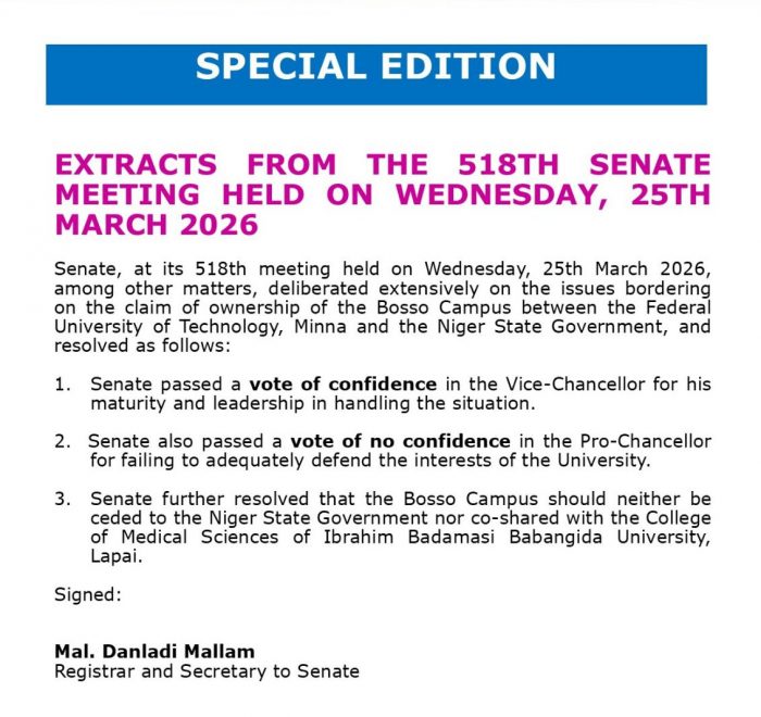 EXTRACTS FROM THE 518TH SENATE MEETING HELD ON WEDNESDAY, 25TH MARCH 2026